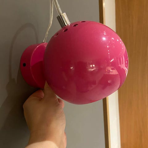 Vi har selv sat en tænd/sluk knap på ledningen og ordnet en ‘halvløs’ forbindelse. Til vægophæng.