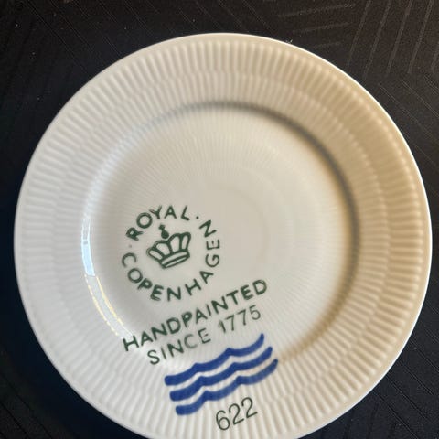 3 Royal Copenhagen middagstallerkerner 27 cm med Signatur som er udgået. De er uden skader men med små fine ridser i overfladen som på alt andet porcelæn.