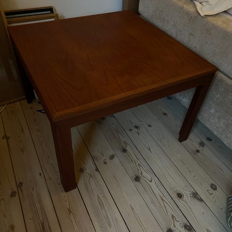 Bord i fineret teaktræ, lidt glasmærker på bordpladen men kan fikses🌟