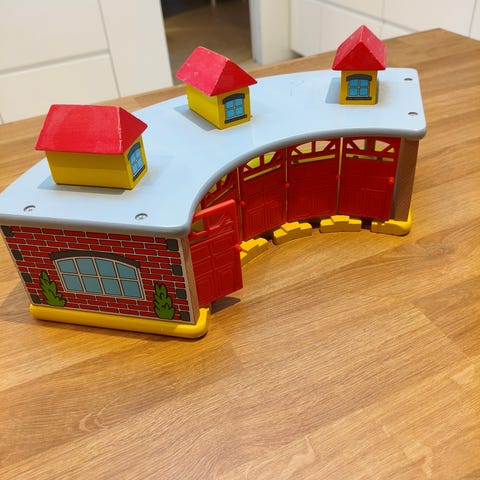 Med togstation, vaskehal, broer, kraner samt mange forskellige tog og figurer.