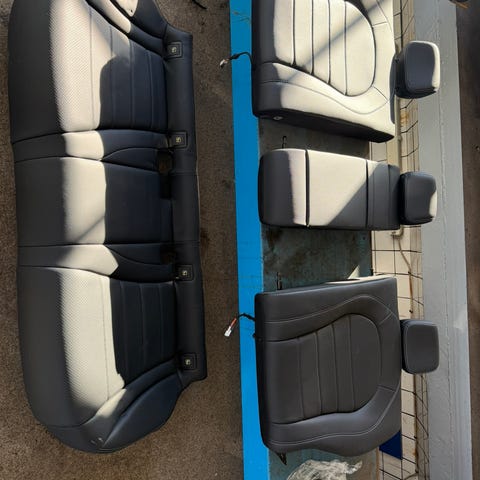 Til min MGC har jeg fået en sadelmager til at sy nyt sædebetræk i brunt læder. Desværre ikke den farve der blev aftalt selvom betrækket er meget flot. Jeg har lovet ham at sætte betrækket til salg. Billedet af nakkestøtten (har 2 stk.) har været gennem photoshop for at få farven til at ligne sæderne. Fik desværre ikke taget billeder af dem, men de er i samme læder som sæderne. Det hele står særdeles flot og i en meget lækker læder. Passer også til en MGB.