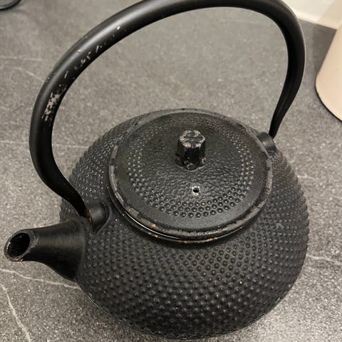 Cirka 0,8 liter. Vægt 750 gram . Nærmest som ny. Brændeovnen følger ikke med.