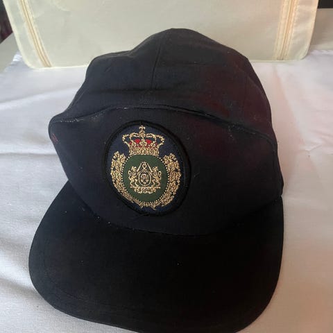 KTAS uniformskasket i sort med emblem foran og læderdetaljer indvendigt. Kasketten har en skærm og en sort snor foran. Egnet til brug som del af uniform.
