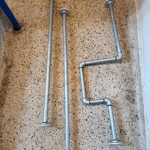 Det ene har en tværstang det er 184 cm. Højt. 114 cm. Bredt og en dybde på 68 cm.