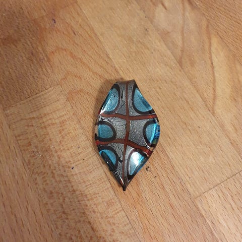Blå glas vedhæng med snor (str. 67 cm)
