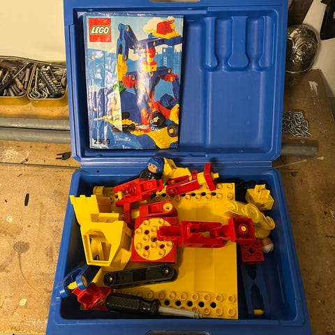 Dette er et træ byggesæt kaldet 'Mein Schweizerhäuschen', fremstillet i Vesteuropa. Sættet inkluderer forskellige farvede træstykker, såsom røde tage, grønne træer, gule hegn og skaldede figurer, som kan samles for at skabe et lille alpelandskab. Det er en sjov og kreativ aktivitet for børn, som fremmer finmotorik og kreativ tænkning. Produktet er lavet af stødfast træ og er designet til at være robust og holdbart. Alle dele vises tydeligt organizeret i kassen.