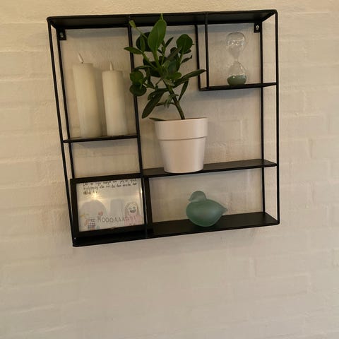 Metalvægstativ rund 45 cm.Den sorte ramme på dette vægstativ står i kontrast til smukt med det naturlige træ. Træplankerne har en ru finish for et autentisk look. Style stativet med forskellige stearinlys, vaser, ornamenter og planter, eller læg urter og krukker på det. Du kan fortsætte med at variere på ubestemt tid.