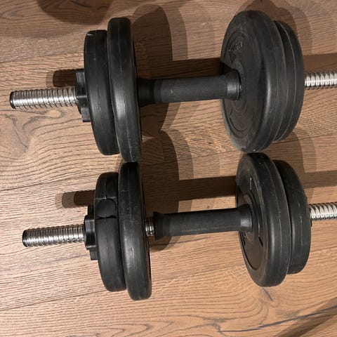 Energetics håndvægte sæt bestående af to håndvægte med flere vægtskiver i sort metal. Håndvægtene har greb i metal og vægtskiver med vægtangivelse på 12,5 kg. Sættet kan anvendes til styrketræning og fitnessøvelser.