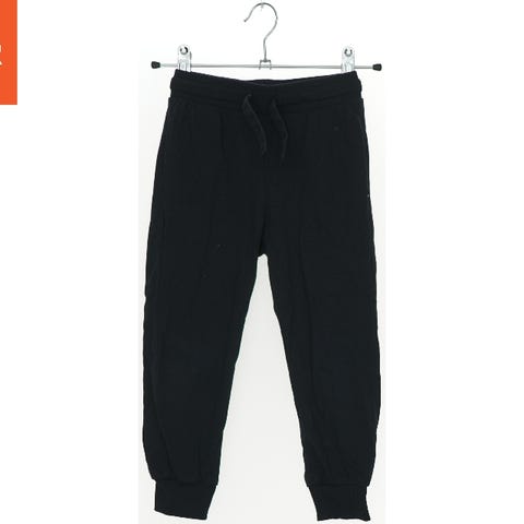 Grå sweatpants til børn med ribkanter ved talje og ankler. Bukserne har to små lommer foran og er lavet af blødt materiale, hvilket gør dem komfortable. Velegnet til daglig brug.