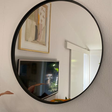 Sort rundt spejl fra Jysk. Ingen skader eller lignende, købt for ny i 2023. Sælges da vi flytter.