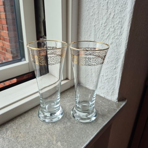 Ølglas med guldkant (str. 15 cm)