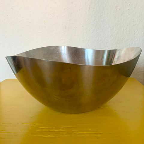 Denne serveringsskål er lavet af rustfrit stål og har en diameter på 24,5 cm. Vintage 1970’er design. Den har to træhåndtag, der gør det nemt at løfte og flytte panden. Bunden af panden er lavet til at distributere varme jævnt. Panden er velegnet til madlavning og servering af forskellige retter.