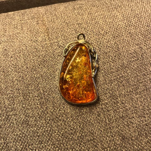 1 stk. Rav med indeslutninger sælges 13,95 g mål 5,1 x 3,8 cm. kom med et bud.