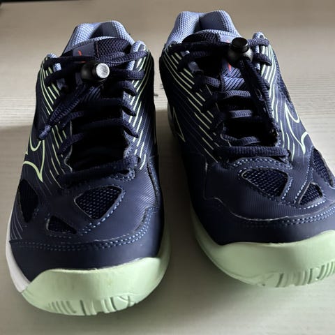 Mizuno CYCLONE SPEED 4 JR junior blå indendørs sko er utroligt lette og giver optimal støtte til enhver hurtig reaktionsbevægelse. De fleksible riller giver stor fleksibilitet, den flade sålstruktur øger stabiliteten, og den afrundede hæl giver mulighed for en jævn overgang. Overdelen er quiltet for ekstra lethed og åndbarhed.