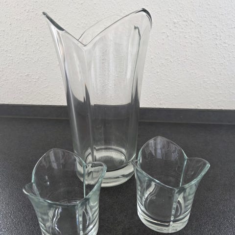 1 Vase + 2 Fyrfadsstager Glas.