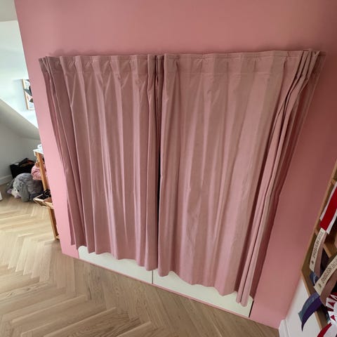 IKEA gardin sæt i lyserød farve i tyk velour. Som ny, har blot fortrudt farven. Købt for ca 1 mdr siden