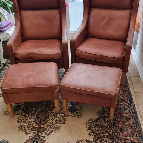 Lænestol af Mogens Hansen MH 195. Ben i bøg. Stof fra Kvadrat. Tonus 3 farve 207 rød. Stol og skammel fremstår meget velholdt. Stol er købt i 2006. Kvittering haves. Nypris i dag for stolen er 31.946 kr. Pris for stol og skammel 9.000 kr. Stol alene 8.000 kr. PS. Vi har to ens stole, hvis man er interesseret i et par.