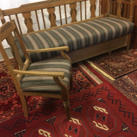 Super flot sæt bestående af en bænk og to stole.