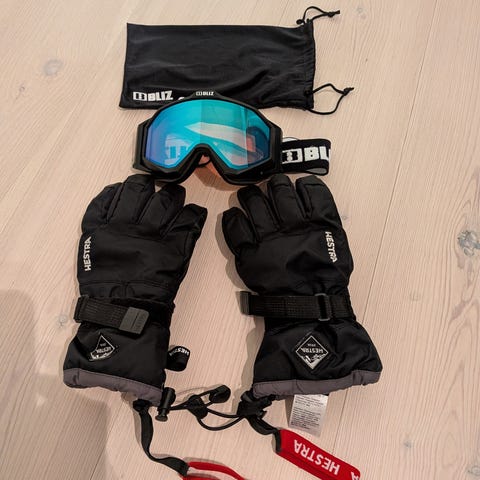 Hestra handsker i størrelse 7 med sort farve. Handskerne har justerbar rem ved håndleddet og er designet til at give beskyttelse og komfort. Materialet er slidstærkt og velegnet til udendørs brug.