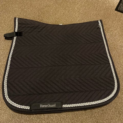 Horse Guard Kahlo sadelunderlag i sort farve. Underlaget er designet til at give komfort og beskyttelse under sadlen. Materialet og størrelsen er tilpasset for optimal pasform og funktion til ridning.