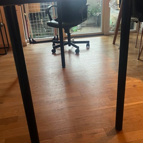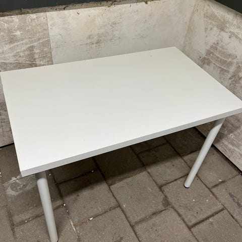 Et meget neutralt og solidt bord. Har nogle ridser, så ville måske ikke bruge det som spisebord. Har fungeret fint på kontoret. Sælges da jeg flytter til et mindre kontor.