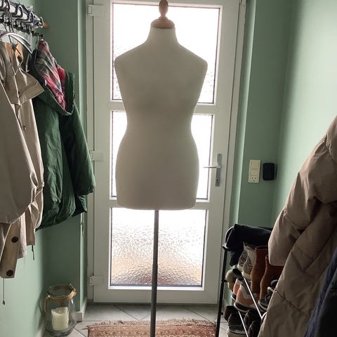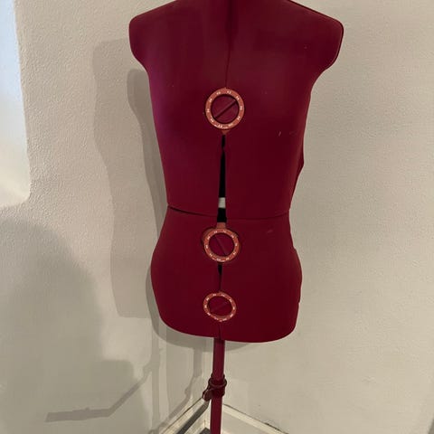 Justerbar skræddergine med metalstativ. Passer til forskellige størrelser ved hjælp af justerbare mekanismer. Aftageligt betræk.
