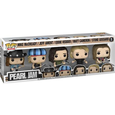 Funko Pop Rocks Band figurer, samlet sæt på 4 stk. Figurenes design repræsenterer medlemmer af et rockband med karakteristiske instrumenter og tøjstil. Materiale: plastik. Farverne varierer efter hver figur.
