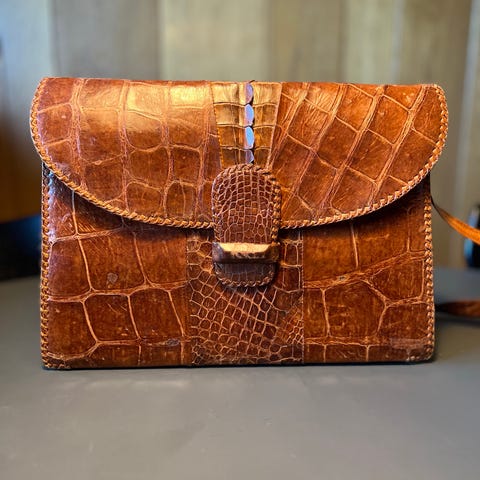 Vintage taske i krokodille skind med en smuk patina sælges.