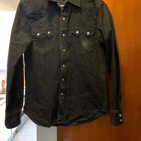 Levi's skjorte i størrelse M til kvinder. Skjorten er hvid med lyseblå stribeog lavet af bomuld. Den har lange ærmer og knaplukning foran.