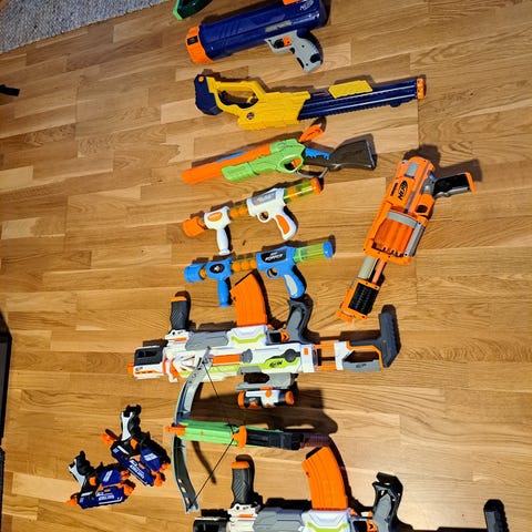 Nerf legetøjsskydevåben. Sælges for barnebarn, som er vokset fra det. Kun kr. 45,- pr. stk. eller alle 3 for kr. 100,- afhentet i Hillerød. Kan sendes.