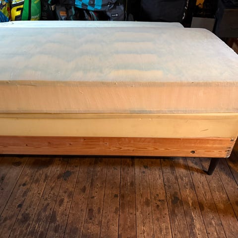 Egetræs-ben og madras-betræk i hør medfølger. Sengegavl medfølger ikke.