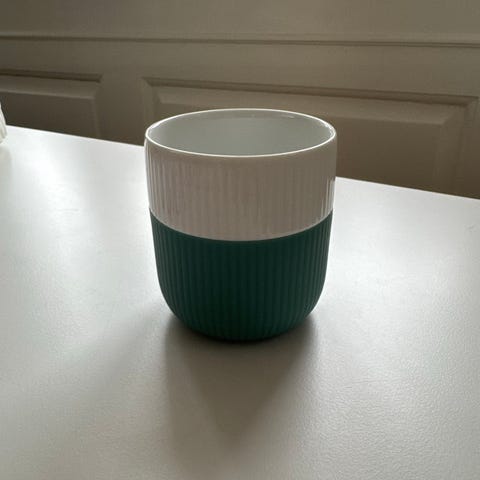 Royal Copenhagen krus i porcelæn med gul og hvid farve.