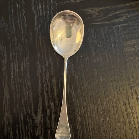Smuk og kraftig sølvske dekoreret mønster og god tyngde. Sølv: 835