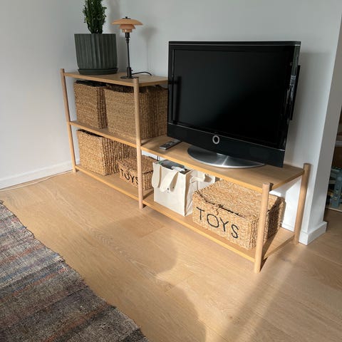 Der er et lille hak i træet som vist på billedet. Man ser det ikke når den hænger.