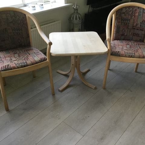 Fint gammelt mahognibord med 2 medfølgende rokokostole.
