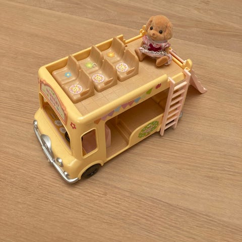 Sylvanian Families med skolebus, børnehave bus og børnehave sæt med figurer