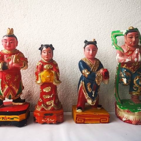 Træfigurer sæt med 7 asiatiske figurer