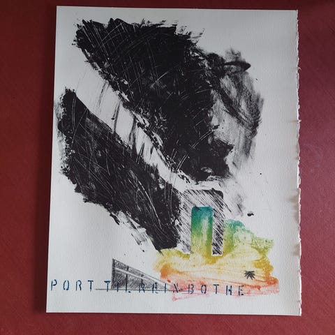 Sæt bestående af 3 abstrakte malerier/collager i træramme. Malerierne har en mørk farvepalet med nuancer af brun, sort og beige. Hver ramme er firkantet og fremstillet i træ. Velegnet til vægophæng som dekorativ kunst.