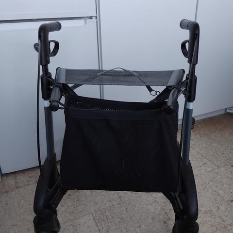 Rollator med bakke og opbevaringsnet