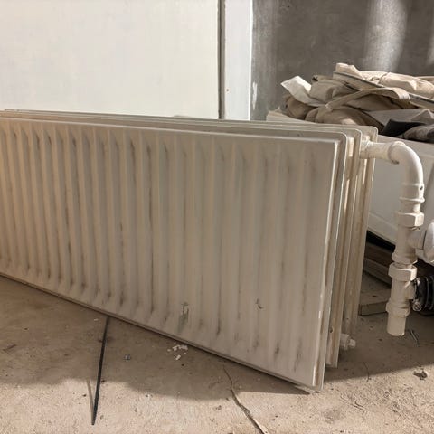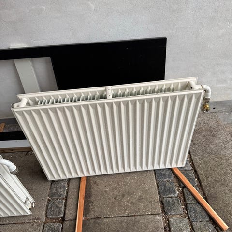 Radiator med dimensionerne 50x80x10 cm, fremstillet i metal og malet hvid. Velegnet til opvarmning af rum.