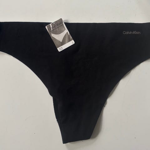 Calvin Klein 3-pak g-streng trusser. Helt nye. Super lækker blød kvalitet i økologisk bomuld og modal med hvid logo elastik. Pakke med tre par indeholder et par grå, et par hvide og et par sorte.