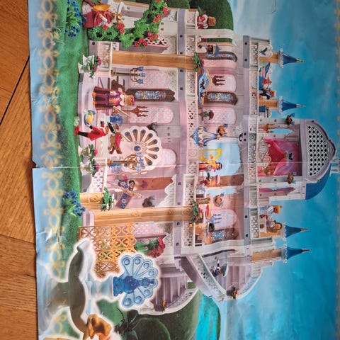 Playmobil slot med meget tilbehør. 20+ figurer, hestevogn, heste, møbler mm.