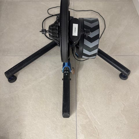 Wahoo KICKR SNAP cykeltræner med sort farve. Træneren er designet til at fastgøre cyklen sikkert for indendørs træning. Den har et robust stel og giver modstand til cykeltræning i hjemmet.