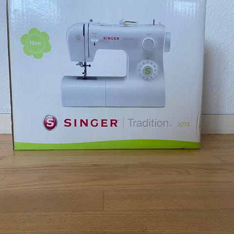 Singer Symphonie V symaskine i kasse med manual og diverse sy tilbehør.