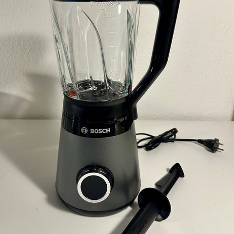 Kraftfuld blender fra Bosch, som kan lave varme supper og knuse is - perfekt til smoothies.