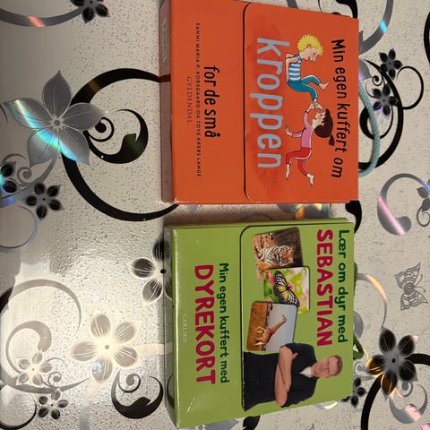 Sæt med tre kuffertere med temaer om kroppen, trafik og børnesange. En fantastisk samtalestarter i alle emner. Så kan man lige trække et par kort før sengetid. Der er farverige illustrationer og tekst rettet mod børn.