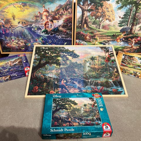 14 fine puslespil på 1000 brikker+, komplette med alle brikker. Disney og Jan van Hasteren samt et par øvrige. Typisk lagt 1-2 gange max. Sælges for 50 kr stykket - eller for 500 kr ved samlet køb. Skal afhentes - jeg sender ikke.