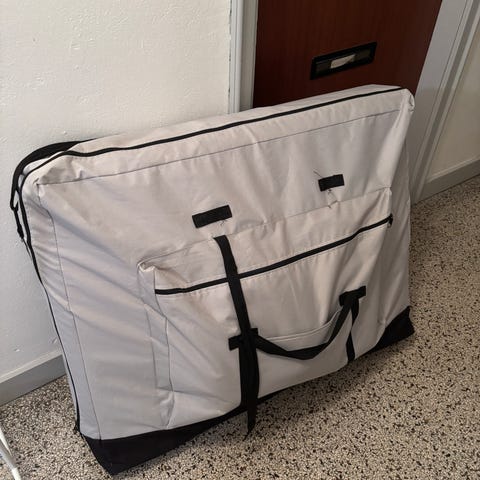 Sælger en pæn og velholdt professionel massagebriks i hvid. Briksen er stabil, komfortabel og nem at folde sammen, hvilket gør den ideel til både klinikbrug og hjemmebrug.