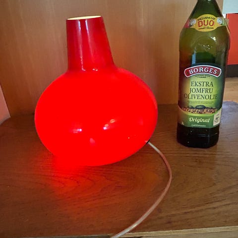 Rund glaslampe på fod. Ø25 cm. Pære medfølger.
