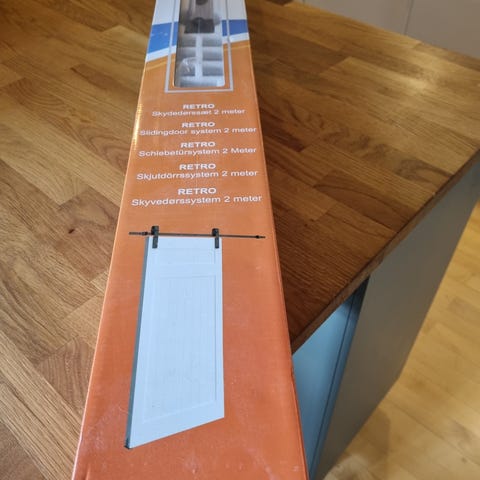 Skydedørssæt - aldrig brugt. Dørplade skal købes seperat.